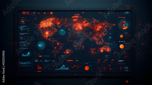 © Bos Amico, Obraz premium Advanced futuristic digital interface for managing global trade flows transportation networks and international logistics using intelligence driven data visualization and analytics
