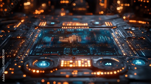 Obraz premium Advanced holographic user interface on high-tech surface display photos