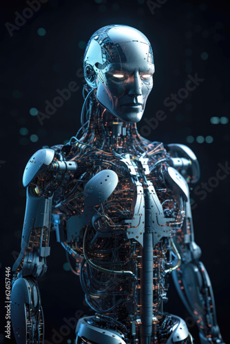 Naklejka premium Advanced Human Cyborg: Futuristic Innovation in Artificial Intelligence Generative AI