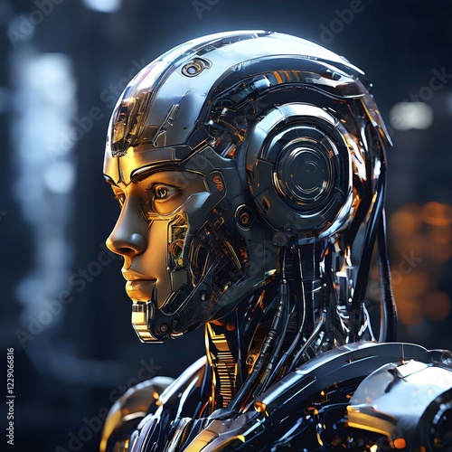 © Stefan Schurr/imageBROKER, Fototapeta premium Advanced humanoid robot heads illustrating future robot concepts, AI generated