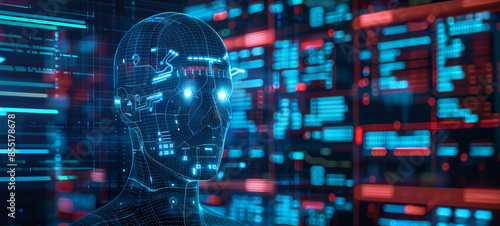 Fototapeta premium Advanced identity theft detection with holographic interfaces, side view,...