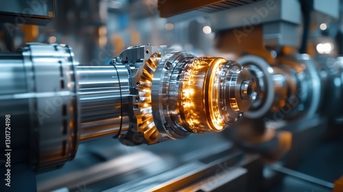 Fototapeta premium Advanced industrial machinery with illuminated rotating components in factory