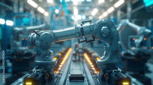 Fototapeta premium Advanced Industrial Robotics systems are extensively used in the Automated Manufacturing Facility