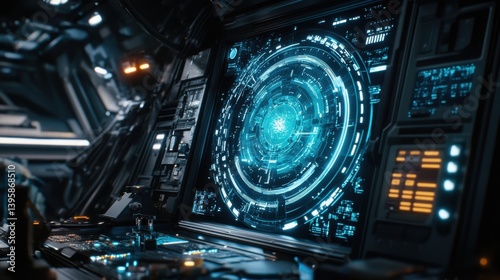 Fototapeta premium Advanced Processor Surrounded by Glowing Holographic