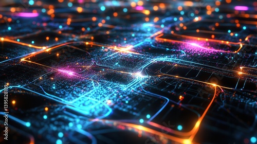 © SepazWorks, Obraz premium Advanced Quantum Computer with Vibrant Holographic Display