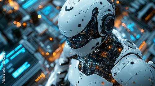 Fototapeta premium Advanced Robot With Illuminated Internal Circuits