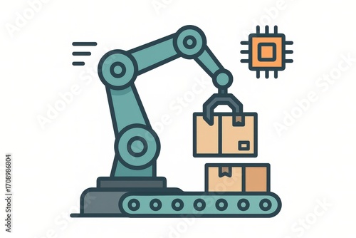 Fototapeta premium Advanced robotic arm delivering smart packaging solutions within automated logistics environments showcasing innovation in manufacturing and efficiency to enhance production capabilities