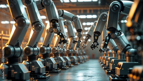 Fototapeta premium Advanced robotic arms efficiently assembling products in a modern factory...