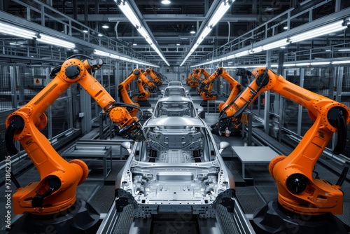 Fototapeta premium Advanced robotic assembly line for car manufacturing