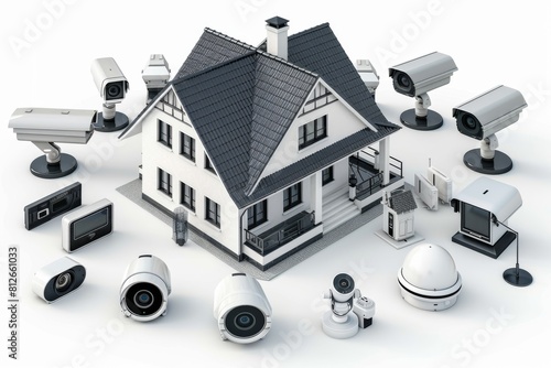 © Leo Rohmann, Naklejka premium Advanced security cameras provide futuristic building assistance through innovative, safe automation and networked alerts.