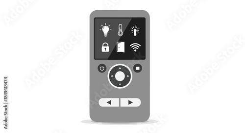Fototapeta premium Advanced smart home universal remote control device with an intuitive digital interface displaying automated household functions like lighting,