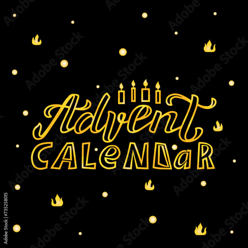 © Elizaveta, Fototapeta premium Advent Calendar golden lettering on textured background. Hand drawn vector illustration with text decor icon for card or decor and advertising. Positive holiday festive quote for template or concept