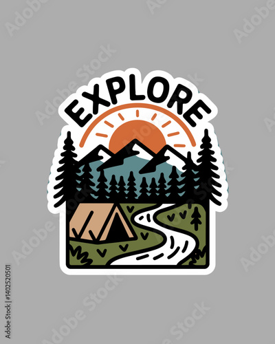 © Dionysius, Fototapeta premium Adventure Awaits: Mountain Camping Scene with Tent and Winding River