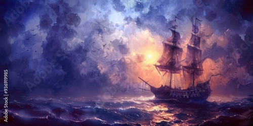 Fototapeta premium Adventure Awaits. Pirate Ship Exploration Concept