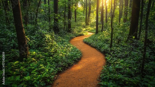 Fototapeta premium Adventurous jungle exploration path lush forest hyperrealistic details serene...