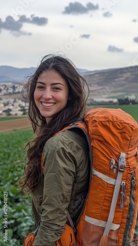 © Unnamed Bird, Naklejka premium Adventurous Woman in Nature with Backpack