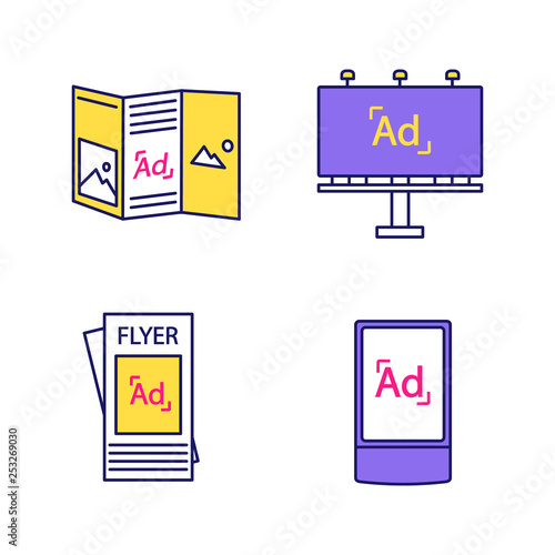 © IMG visuals icons, Fototapeta premium Advertising channels color icons set