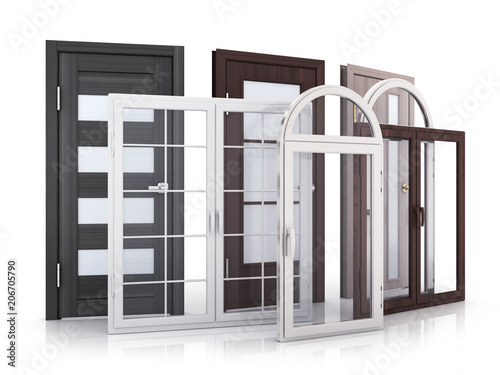 © Vlad Kochelaevskiy, Obraz premium Advertising windows and doors on white background