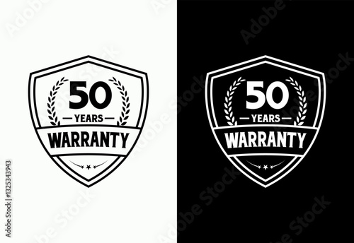 Obraz premium Advertising 50 years warranty shield emblem, for label, icon, logo, badge, symbol, button