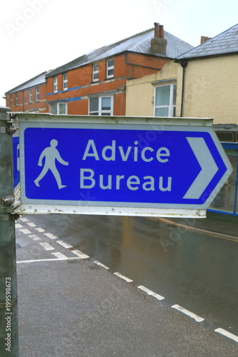 Fototapeta premium Advice Bureau sign on the street in Axminster, Devon