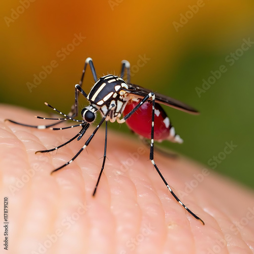 © Faiza, Fototapeta premium Aedes Aegypti Mosquito on Human Skin