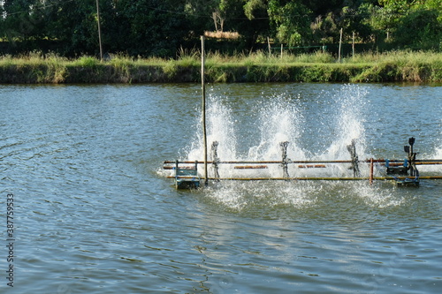 Fototapeta premium Aeration machine in the shrimp pond of farmers.