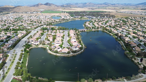 © YeyoMz, Fototapeta premium Aereal view of Menifee Lake, in Menifee, California
