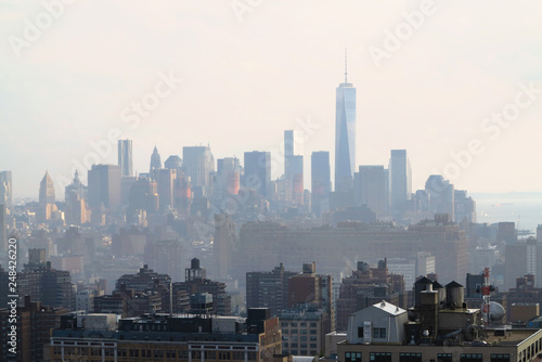 Fototapeta premium Aerial and panorama view of skyscrapers of New York City, Manhattan. Top...