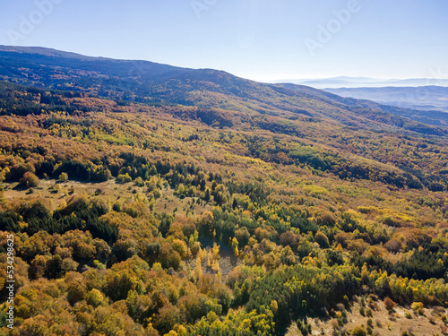 © Stoyan Haytov, Fototapeta premium Aerial Autumn panorama of Vitosha Mountain, Bulgaria
