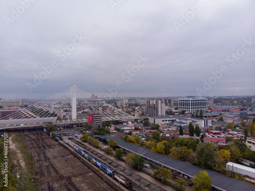 Obraz premium Aerial autumn view of Basarab bridge and Basarab station. In the backgroud...