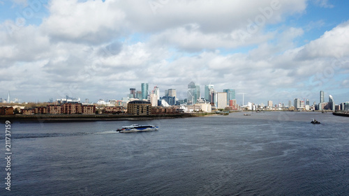 Naklejka premium Aerial bird's eye view photo taken by drone of famous Docklands and Canary...