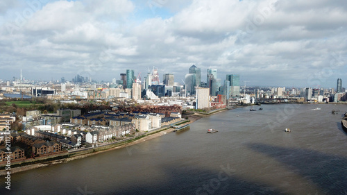 Obraz premium Aerial bird's eye view photo taken by drone of famous Docklands and Canary...