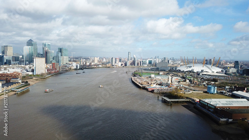 Naklejka premium Aerial bird's eye view photo taken by drone of famous Docklands and Canary...