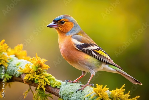 Obraz premium Aerial Chaffinch on Lichen Branch - Stunning Bird Photography