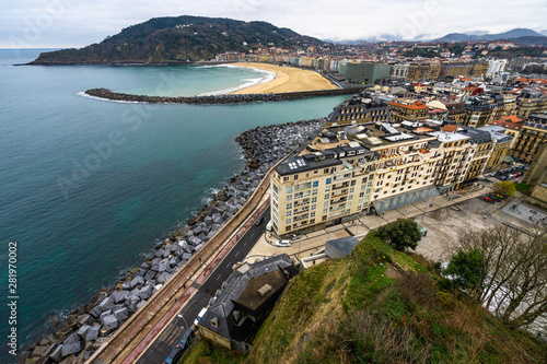 Obraz premium Aerial cityscape of San Sebastian viewed from Mount Urgull, Basque Country,...