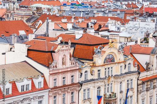 Obraz premium Aerial cityscape view of houses and orange roofs typical of Prague