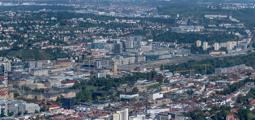 Obraz premium aerial cityscape with railway station neighbourhood from TV-tower, Stuttgart,...