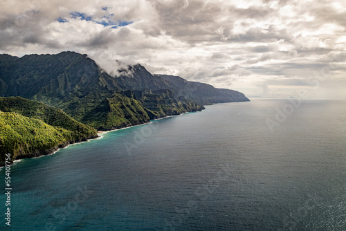 Naklejka premium Aerial coastline of Kauai from helicopter 6