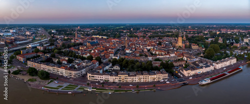Obraz premium Aerial countenance view of Zutphen, The Netherlands, during sunset with...