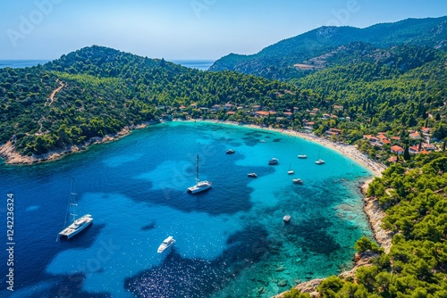 © Hunman, Naklejka premium Aerial drone bird's eye view photo of iconic turquoise bay.