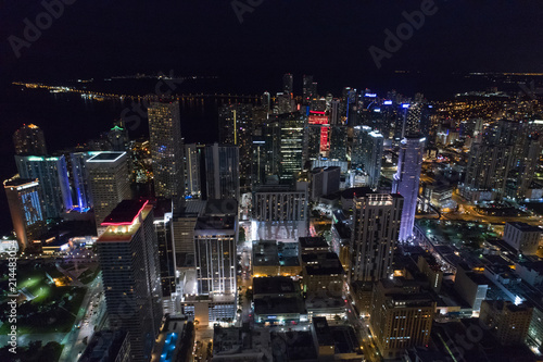 © Felix Mizioznikov, Fototapeta premium Aerial drone image Downtown Miami at night