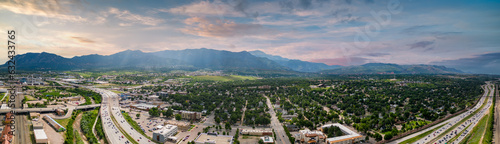 © Felix Mizioznikov, Naklejka premium Aerial drone panorama Colorado Springs CO USA circa 2023