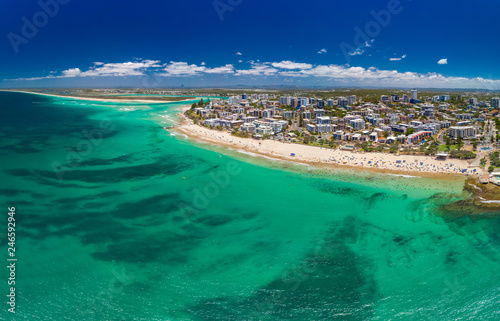 © Martin Valigursky, Fototapeta premium Aerial drone panoramic image of ocean waves on a Kings beach, Caloundra, Queensland, Australia