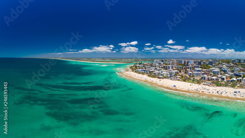 © Martin Valigursky, Fototapeta premium Aerial drone panoramic image of ocean waves on a Kings beach, Caloundra, Queensland, Australia