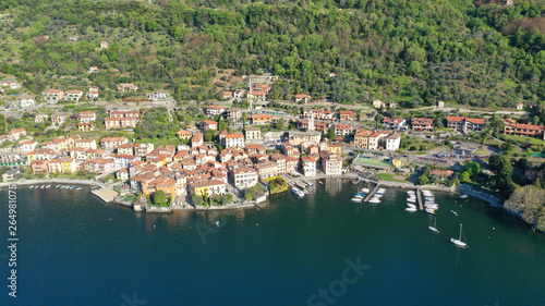 © aerial-drone, Fototapeta premium Aerial drone panoramic photo of famous beautiful lake Como one of the deepest in Europe, Lombardy, Italy