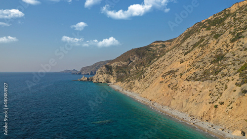 Fototapeta premium Aerial drone photo of beautiful turquoise beach of Komponada, Kythera island, Ionian, Greece