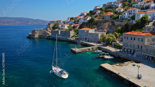 Fototapeta premium Aerial drone photo of picturesque port and main village of Hydra or Ydra...