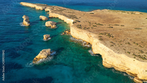Obraz premium Aerial drone photo of small islet of Glaronisi with paradise emerald clear...