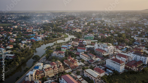 Obraz premium Aerial drone photograph of city of Siem Reap in Cambodia.