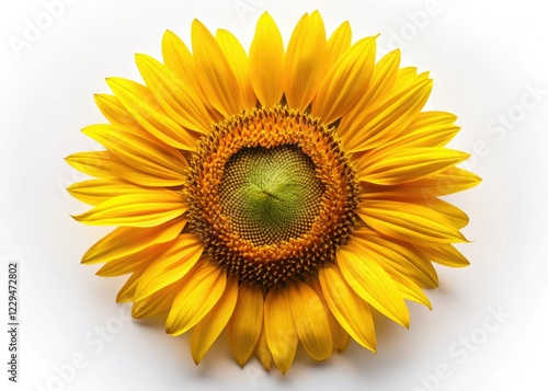 Fototapeta premium Aerial drone shot: a single sunflower, heart-shaped, isolated against a pure white background.